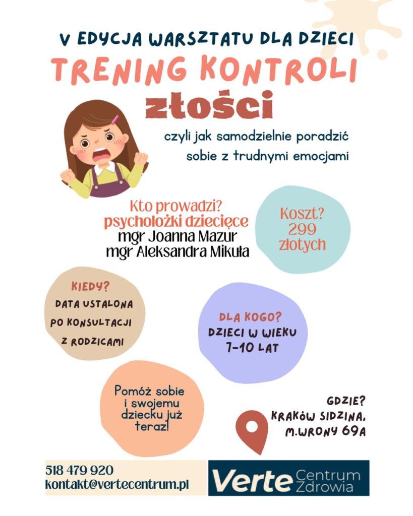 Zapraszamy na niezwykłe wydarzenie, które pomoże Twojemu dziecku opanować sztukę kontrolowania złości! TRENING KONTROLI ZŁOŚCI – 2,5 godzinny warsztat dla dzieci w wieku 7-10 lat, prowadzony przez doświadczone psycholożki dziecięce i trenerki TUS.